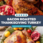 This Bacon Roasted Thanksgiving Turkey recipe delivers a juicy, flavorful bird infused with a smoky bacon paste and a fragrant blend of spices and fresh aromatics. Perfectly roasted at 350°F, the turkey boasts a crispy exterior, tender meat, and a hint of sweetness from brown sugar and apples, making it a standout centerpiece for your holiday feast.