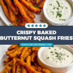 Crispy and flavorful baked butternut squash fries coated with cornstarch and seasoned with garlic powder, paprika, and thyme. These fries are baked to perfection for a tender inside and a delightful crisp outside, served warm with a creamy herb mayo dip.