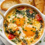 - Garnish and Serve: Remove from oven and optionally top with freshly chopped basil or chives. Serve warm with crusty baguette, toast, or pita for dipping into the flavorful baked eggs and vegetables.