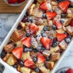 - Finish and Serve: Once baked, sprinkle the casserole with powdered sugar for a touch of sweetness and visual appeal. Serve warm with maple syrup generously drizzled over each serving. Enjoy your comforting berry French toast casserole!