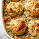 This Biscuit Vegetable Pot Pie Casserole is a comforting, hearty dish featuring a creamy vegetable filling topped with flaky homemade biscuits. Perfect for a cozy meal, this recipe combines a medley of vegetables in a savory sauce, baked under golden brown, buttery biscuits for a satisfying vegetarian entree.