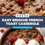 This Brioche French Toast Casserole is a perfect Christmas breakfast dish featuring layers of soft brioche bread soaked in a cinnamon-vanilla custard, topped with a crumbly streusel topping, and baked to golden perfection. Served with homemade whipped cream, it makes a festive and indulgent morning treat that can be prepared ahead of time for convenience.