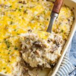 - Transfer to Casserole Dish: Lightly grease a 9 x 13-inch casserole dish and transfer the mixture into it. Sprinkle the remaining cheddar cheese evenly over the top.