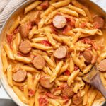 A quick and flavorful Cheesy Kielbasa Pasta that’s perfect for a comforting weeknight dinner. This one-pot dish combines savory kielbasa sausage, aromatic garlic and Italian seasoning, tender pasta cooked in a rich tomato and chicken broth, all topped with melted Cheddar-Jack cheese for a creamy finish.