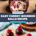 Delicious and festive Cherry Bourbon Balls combining finely chopped pecans, bourbon, maraschino cherries, and rich chocolate coating. These no-bake treats are perfect for holiday parties or special occasions, offering a perfect balance of nutty, boozy, and sweet flavors.