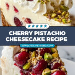 This Cherry Pistachio Cheesecake is a luscious dessert combining a crunchy pistachio and graham cracker crust with a creamy pistachio pudding-infused cream cheese filling, topped with sweet cherry pie filling and optional chopped pistachios for garnish. Perfectly baked and chilled, this elegant cheesecake is a delightful treat for special occasions or any dessert craving.