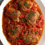 Chicken Cacciatore is a classic Italian dish featuring bone-in, skin-on chicken pieces simmered in a rich tomato and red pepper sauce with aromatic garlic, onions, and herbs. This hearty, comforting stew is oven-braised to tender perfection, blending savory chicken with bright flavors of white wine, fresh herbs, and sweet bell peppers. It’s perfect served over pasta, polenta, or crusty bread.