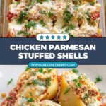 Delicious Chicken Parmesan Stuffed Shells combine tender jumbo pasta shells filled with a flavorful mixture of ground chicken, ricotta, mozzarella, and Parmesan cheeses, baked in a rich marinara sauce and topped with crispy Panko breadcrumbs for a comforting and satisfying Italian-American dish perfect for family dinners.