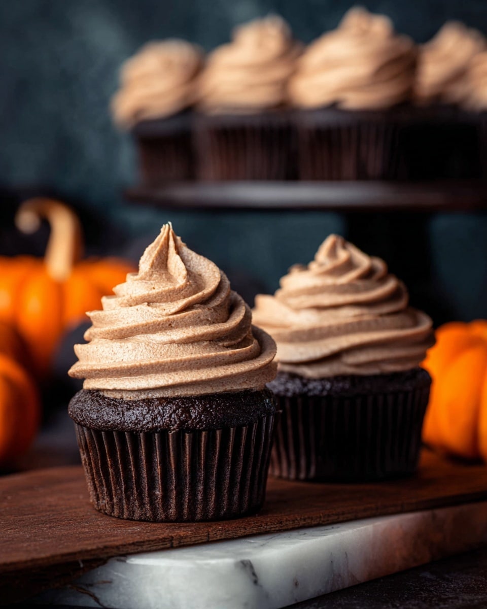 - Flavor Combo Perfection: The rich black cocoa pairs beautifully with pumpkin’s natural sweetness and spice for a cupcake like no other.