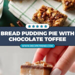 This delicious Bread Pudding Pie features a buttery, sweet crust topped with a rich custard mixed with milk chocolate English toffee bits and chopped pecans. It’s a perfect dessert for gatherings, combining the classic comfort of bread pudding in a pie form that’s easy to serve and enjoy chilled.