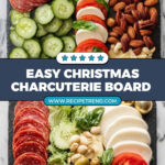 Celebrate the festive season with this beautifully arranged Christmas Charcuterie Board, featuring a colorful candy cane layout of fresh tomatoes and mozzarella, complemented by a variety of cheeses, cured meats, crackers, fruits, nuts, and festive garnishes. This no-cook recipe is perfect for holiday gatherings and offers a delightful mix of savory, sweet, and fresh flavors.