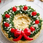 This Easy Christmas Appetizer “Hummus Wreath” is a festive and visually stunning appetizer perfect for holiday gatherings. Featuring a creamy hummus base layered with crumbled feta, fresh green onions, and a vibrant parsley topping decorated with cherry tomatoes and an optional red pepper bow, this appetizer is both delicious and healthy. It’s quick to assemble, requires no cooking, and serves beautifully with pita chips or fresh veggies.