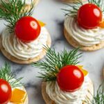 - Top with Tomato: Place a tomato half in the center of each cracker atop the cream cheese, resembling the main body of the ornament.