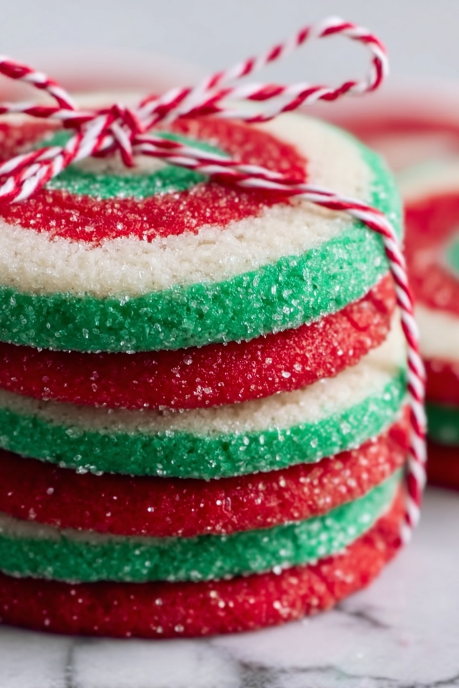 I usually keep these cookies simple — the red and green pinwheels steal the show. However, a light dusting of powdered sugar or a tiny selective drizzle of white chocolate can elevate them without overpowering. For a personal touch, sometimes I add rainbow nonpareils on top before baking for an extra festive sparkle.