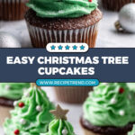 Celebrate the holiday season with these festive Christmas Tree Cupcakes made from moist chocolate cake and topped with fluffy green buttercream frosting piped like Christmas trees, decorated with star sprinkles and colorful pearls for a cheerful treat everyone will love.