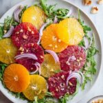 Start by spreading the arugula on your serving plate or bowl. Arrange the citrus slices on top along with thinly sliced red onions. Drizzle the dressing generously over everything and sprinkle the toasted walnuts last to keep their crunch. If you like, a quick toast in a dry pan releases more nutty aroma — just watch carefully so they don’t burn! Serve immediately for the freshest experience.