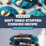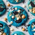 Delight in the fun and colorful Cookie Monster Cookies, featuring a vibrant blue dough packed with chunks of Oreo cookies, mini cookies, and both dark and white chocolate chips. These soft, chewy cookies have a surprise whole Oreo baked inside each one, making them a playful and indulgent treat perfect for parties or special occasions.