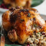 This Cornish Hens with Apple-Cranberry Rice Stuffing recipe combines tender, juicy hens roasted to perfection with a flavorful stuffing of rice, apples, dried cranberries, and fresh herbs. The hens are glazed with a sweet and tangy apple cider and maple syrup mixture, enhanced by Dijon mustard and cinnamon for a beautifully aromatic finish. Perfect for a festive dinner or special occasion, the recipe balances savory and sweet flavors with a comforting, wholesome stuffing inside each bird.
