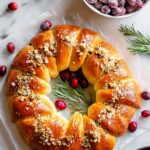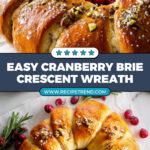 This Cranberry Brie Crescent Wreath is a beautiful and festive appetizer perfect for holiday gatherings. It features buttery crescent dough triangles arranged into a wreath shape and filled with luscious brie cheese, tangy cranberry sauce, crunchy pistachios, and fragrant rosemary. Finished with a golden egg wash, a sprinkle of fleur de sel, and a drizzle of honey, this impressive yet easy-to-make dish combines savory, sweet, and nutty flavors to delight your guests.