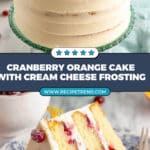 A delightful Cranberry Orange Cake featuring moist layers infused with fresh orange zest and juice, studded with tart cranberries, and perfectly complemented by a rich, creamy orange flavored cream cheese buttercream frosting. Ideal for festive occasions or a special dessert treat.