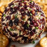 This Cranberry Pecan Cheese Ball is a festive and flavorful appetizer perfect for holiday gatherings and parties. Cream cheese and white cheddar blend smoothly with dried cranberries, pecans, and fresh chives, then chilled and rolled in a crunchy cranberry-pecan coating for a delightful blend of creamy, sweet, and nutty textures. Serve with crackers for an easy, crowd-pleasing snack.