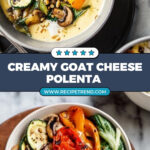This Creamy Goat Cheese Polenta with Ratatouille recipe combines rich, smooth polenta infused with tangy goat cheese topped with a colorful, baked medley of seasonal vegetables. The ratatouille is baked to tender perfection with herbs and spices, while the polenta is slowly cooked to creamy goodness. Finished with toasted pine nuts and fresh basil, this comforting dish offers vibrant Mediterranean flavors ideal for a wholesome dinner.
