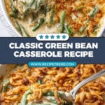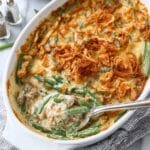A classic Green Bean Casserole made creamy with condensed mushroom soup, topped with crispy fried onions for a deliciously comforting side dish perfect for holidays and family dinners.