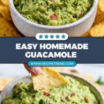 This simple guacamole recipe is a fresh and flavorful Mexican classic, perfect as a dip or topping. Made with ripe avocados, red onion, jalapeno, Roma tomatoes, cilantro, salt, and fresh lime juice, it combines creamy texture and zesty flavors for a delicious and easy-to-make appetizer or snack.