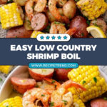 A classic Low Country Shrimp Boil featuring succulent extra large shrimp, red potatoes, sweet corn, and smoky kielbasa simmered in a flavorful broth with beer, Old Bay seasoning, and lemon. This traditional seafood feast is perfect for gatherings and served with melted garlic butter for dipping.