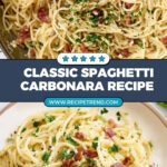 This classic Spaghetti Carbonara recipe delivers a creamy, savory pasta dish made with crispy bacon, garlic, eggs, and Parmesan cheese. It’s quick and easy to prepare, relying on the residual heat of the pasta to create a smooth, luxurious sauce without any cream. Finished with freshly cracked black pepper and optional parsley, it’s a rich yet simple Italian favorite perfect for weeknight dinners or special occasions.