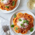 Bring a large pot of water to a rolling boil and salt it generously—think salty like the sea. Cook 1 pound of spaghetti until just al dente following the package instructions. When it’s ready, use tongs, a pasta fork, or a slotted spoon to transfer the pasta directly into the pan with your beautiful sauce. Add a splash of that starchy pasta water—it helps the sauce cling to every strand. Toss gently over low heat for about 2 minutes until the pasta is evenly coated and perfectly tender.