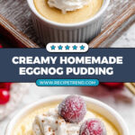 This Homemade Eggnog Pudding is a creamy and festive dessert that’s perfect for the holiday season. Made with rich eggnog, egg yolks, and warm spices like nutmeg, this pudding delivers the classic flavors of eggnog in a silky, comforting texture. Enhanced with a hint of rum extract and topped with whipped cream, freshly grated nutmeg, and optional sugared cranberries, it makes a delightful treat to enjoy chilled.