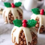 These festive Rice Krispie Christmas Puddings are a delightful no-bake treat combining melted milk chocolate, butter, mini marshmallows, and crispy rice cereal. Rolled into charming pudding balls and decorated with white chocolate drizzle and colorful sugarpaste holly leaves and berries, they make a perfect holiday dessert that’s easy to prepare and fun to assemble.