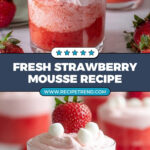 This Easy Fresh Strawberry Mousse is a light, creamy dessert made with fresh strawberries, sugar, and whipped cream. Perfect for a refreshing treat, it features a smooth strawberry puree folded into fluffy whipped cream and chilled to set. Ideal for serving in small glasses as an elegant summer dessert or using as a filling for cakes and pies.