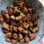 Garlic Butter Steak Bites are tender, juicy pieces of sirloin steak seared to perfection and tossed in a flavorful garlic butter sauce with a hint of red pepper flakes. This quick and easy skillet recipe is perfect for a satisfying weeknight dinner or a delicious appetizer.