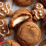 These Gingerbread Cheesecake Cookies combine the warm, festive spices of gingerbread with a creamy cheesecake center for a delightful holiday treat. The cookies are spiced with ginger, cinnamon, nutmeg, allspice, and cloves, rolled in a sweet spiced sugar, and baked to perfection with a luscious frozen cheesecake filling that melts slightly in every bite.