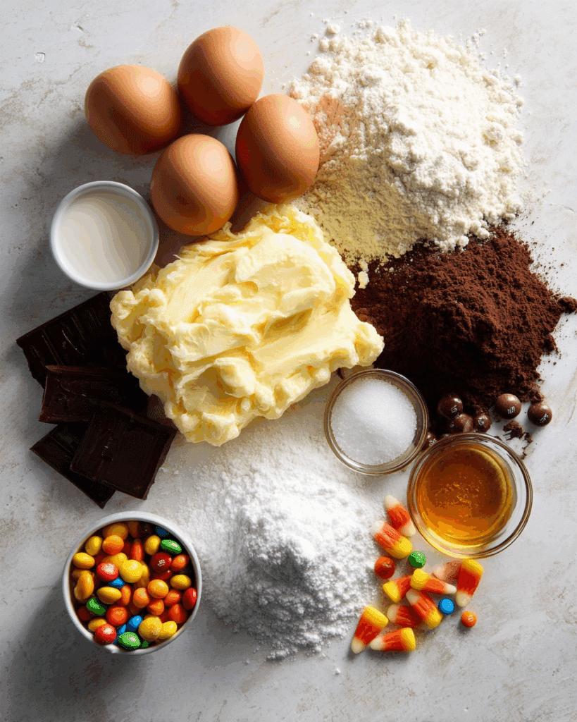 - Optional Decorations: Candy corn, candy eyeballs, mini M&M’s, and cinnamon hearts add character and fun textures.