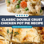 This Double Crust Chicken Pot Pie recipe features a flaky homemade or store-bought pie crust filled with tender chicken, carrots, celery, peas, and a rich, creamy thyme-flavored gravy. Perfect for a comforting family meal, it is baked to golden perfection with a crisp top crust and offers delicious leftovers that reheat beautifully.