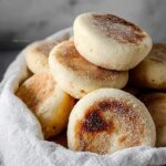 Homemade English Muffins made with a sourdough starter and cooked on a griddle to achieve the classic nooks and crannies texture. This recipe uses an overnight fermentation for better flavor and texture, resulting in soft, chewy muffins perfect for breakfast or brunch.