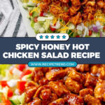 A flavorful and spicy Honey Hot Chicken Salad combining tender cooked chicken coated in honey garlic and buffalo wing sauces, served over crisp romaine lettuce with fresh vegetables and creamy dressing. This salad offers a perfect balance of sweet, spicy, and savory flavors, making a quick and satisfying meal for lunch or dinner.