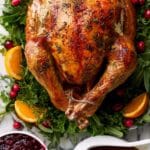 - Serve: Carve turkey and serve with homemade gravy and optional cranberry sauce or desired sides.