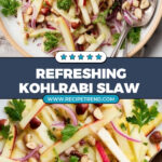 A refreshing and crunchy Kohlrabi Slaw that combines the crispness of kohlrabi and apple with a tangy, sweet dressing made from olive oil, apple cider vinegar, and honey. Enhanced with the nutty flavor of toasted hazelnuts and a touch of whole grain mustard, this slaw is perfect as a light side dish or a healthy snack.