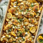 This Sheet Pan Herby Lemon Garlic Chicken and Potatoes recipe delivers a perfectly balanced, flavorful meal featuring juicy chicken thighs marinated in a zesty lemon garlic dressing alongside roasted fingerling potatoes and onions. Finished with a sprinkle of feta cheese and fresh herbs, this one-pan dinner is simple to prepare, healthy, and full of vibrant Mediterranean-inspired flavors.