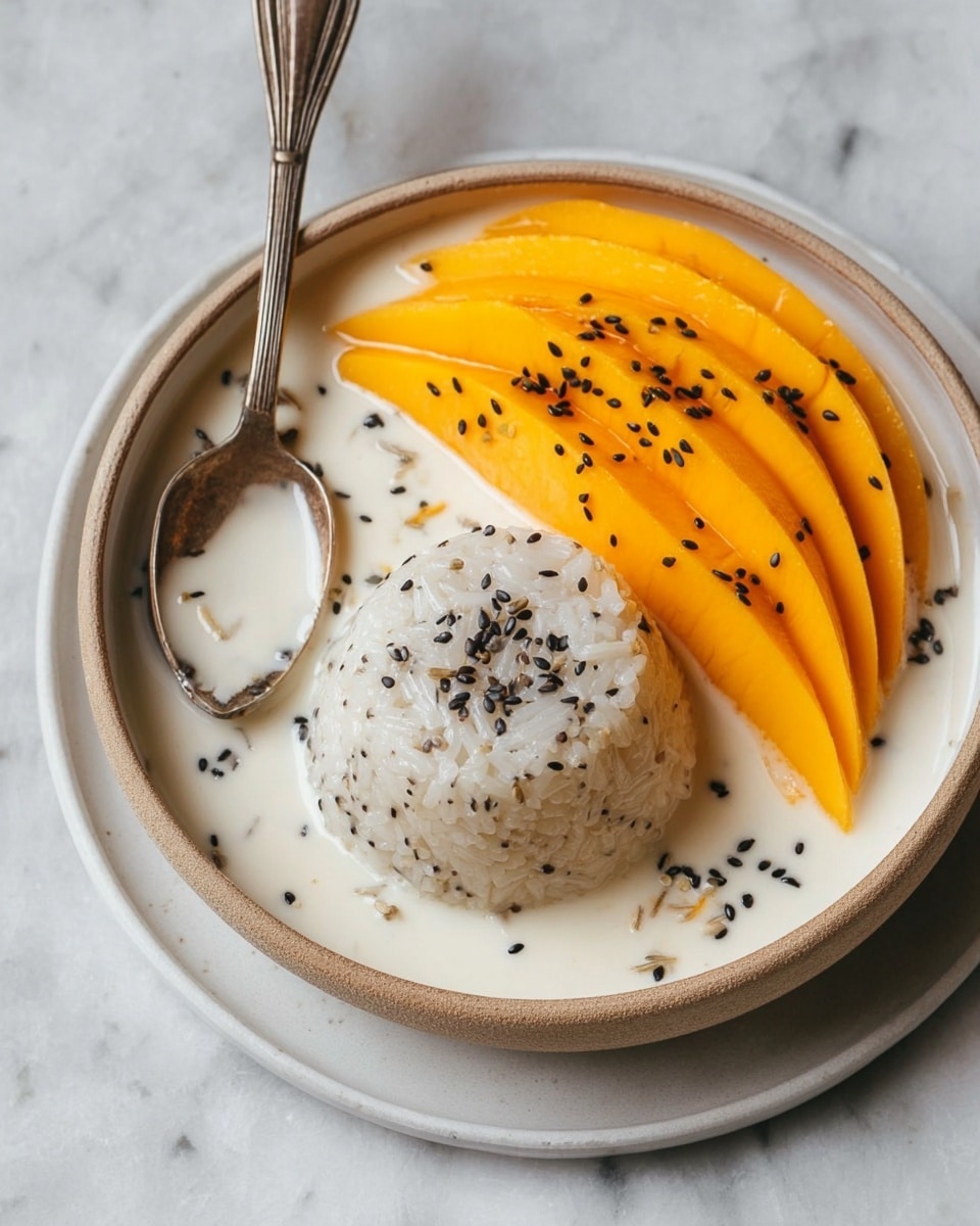 Making Mango Sticky Rice with Coconut Sauce and Toasted Sesame Seeds Recipe has been one of my most rewarding experiments in dessert-making. It’s simple but full of depth — that creamy coconut flavor marrying perfectly with sweet fresh mango never fails to brighten my day. I can’t recommend it enough if you want a tropical treat that’s both comforting and exotic. So go ahead, try this recipe and treat yourself like you deserve a mini vacation right at the kitchen table!