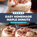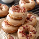 Delicious homemade maple donuts with a tender, fluffy texture and a rich maple glaze. These cake donuts are lightly spiced with nutmeg and cinnamon, fried to golden perfection, and optionally topped with crispy bacon for added flavor and crunch.