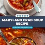Maryland Crab Soup is a hearty and flavorful tomato- and broth-based soup loaded with fresh vegetables and the delicate, sweet taste of lump blue crab meat. This comforting soup features classic Old Bay seasoning, tender potatoes, cabbage, green beans, lima beans, and sweet corn, simmered together to create a satisfying family favorite that celebrates the taste of Maryland seafood traditions.