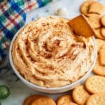 One time, I hollowed out a mini pumpkin and used it as a serving bowl—it was such a cute and festive presentation that got a lot of compliments. You could also layer the dip in a clear glass dish with graham cracker crumbs between layers for a cheesecake dip parfait. Get creative—presentation just adds to the fun!