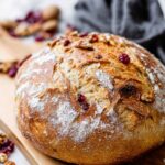 - Cool and serve: Remove the bread from the Dutch oven by lifting the parchment paper. Allow the bread to cool completely on a wire rack before slicing and serving to ensure the texture sets properly. Enjoy your festive cranberry walnut artisan bread!