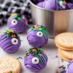 These Oreo Eyeball Truffles freeze beautifully! I’ve frozen them in a single layer in a freezer-safe container for 2-3 months. When thawing, just move them to the fridge overnight and then to room temperature before serving for the best texture.