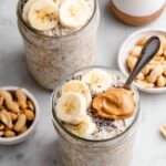 This High Protein Peanut Butter Banana Overnight Oats recipe combines creamy almond milk, vanilla yogurt, and gluten-free oats with the natural sweetness of ripe bananas and the rich flavor of peanut butter. Packed with protein and fiber from chia seeds and yogurt, this easy, no-cook breakfast is perfect for busy mornings and supports a nutritious start to your day.
